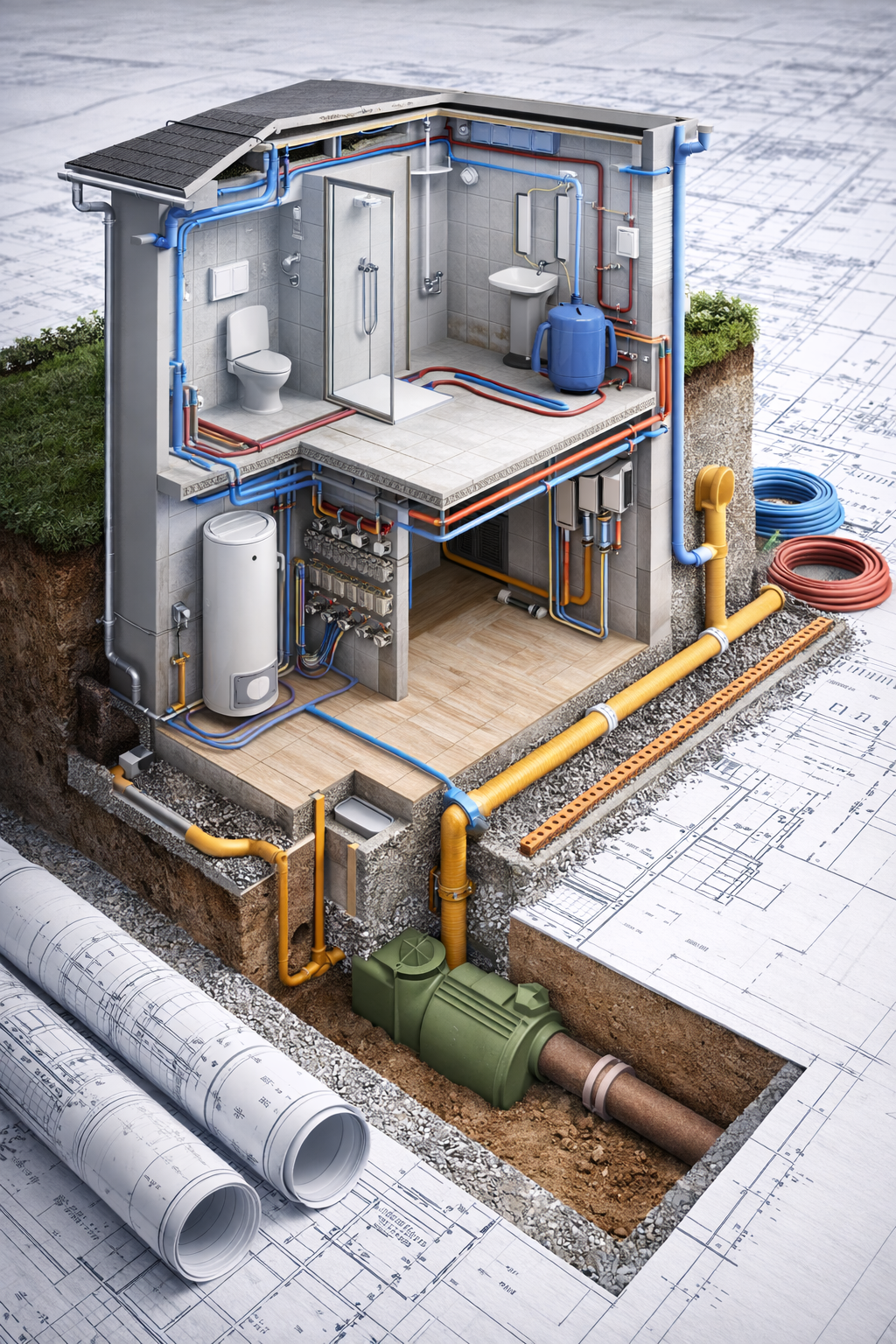Desenvolvemos projetos hidráulicos completos, abrangendo sistemas de água fria, água quente, esgoto sanitário e drenagem de águas pluviais.
